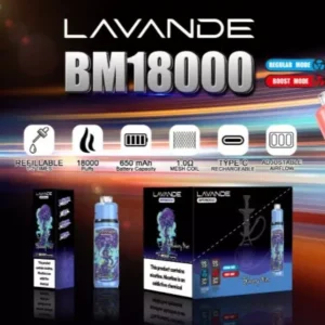 - Aufladbar für Nachhaltigkeit: Im Gegensatz zu herkömmlichen Einweg-Vapes, die nach einer bestimmten Anzahl von Zügen ersetzt werden müssen, ist die Lavande BM 18000 Puffs aufladbar, sodass Sie Ihren Vape ohne unnötigen Abfall weiterhin genießen können.