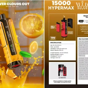 15.000 Puff di Sapore: Con una generosa capacità di e-liquid di 15 ml, il Crown Bar Hypermax offre fino a 15.000 puff, permettendoti di goderti sessioni prolungate senza la necessità di ricaricare o sostituire costantemente il dispositivo.